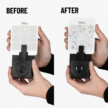 Bloc GlowTrap uses UV light to attract flying insects like mosquitoes, flies, and gnats and traps them instantly on a hidden glue card. No chemicals, no noise, no zapping. Just plug it in and let it silently protect your space.